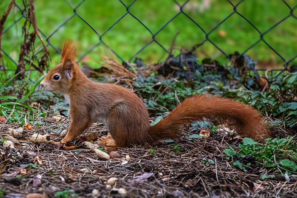 Nun, das Rotkehlchen hat alles andere als ein zartes Stimmchen. Es macht einen mordsmäßigen Krach. – Die Eichhörnchen sind überall unterwegs. Leider hatten sie bei uns noch nie einen Kobel mit Jungen.