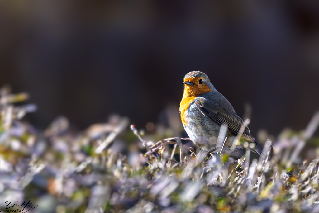 Dass das Rotkehlchen mal oben auf der Hecke sitzt, kommt eher selten vor. Die Hecke war früher das Spatzenrevier. Als wir noch welche hatten.