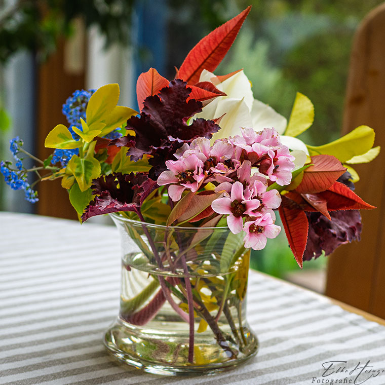 Sonst gibt es auch im Moment nicht viel. Diesen Beitrag schreibe ich am Karfreitag. Das Wetter ist zwar besser als erwartet, aber doch ziemlich frisch und inzwischen auch wieder bewölkt. Vormittags war es sonnig. Ich habe mir aus dem Garten noch einen kleinen Strauß für den Tisch zusammengestellt (#freitagsblümchen) und für unseren gemeinsamen Kaffee am Samstagnachmittag einen Möhrchenkuchen gebacken. Die Sache mit dem Frosting aus Puderzucker, Frischkäse und Zitronensaft ist allerdings eine Katastrophe. Das Zeug wird gar nicht fest. Ich habe das zum ersten Mal gemacht. Nie wieder! Ich denke, ich muss den Kuchen komplett in den Kühlschrank stellen.