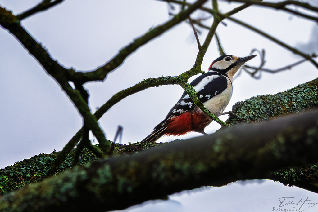 Waren es kürzlich zwei Grünspechte, die sich durch den Garten gejagt haben (konnte ich leider nicht fotografieren) waren heute zwei Buntspechte im Ahorn unterwegs. Leider ist das Wetter trüb, der Ahorn ziemlich weit weg und gegen den Himmel lässt es sich eh immer schlecht fotografieren. Die Ausbeute war also gering, aber versuchen musste ich es. Und Photoshop hilft ja auch immer ein bisschen ;-). Auf den Fotos ist es nicht gut zu erkennen, aber es waren beides Männchen.