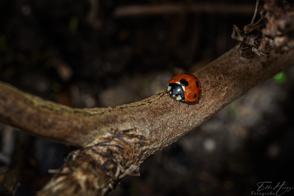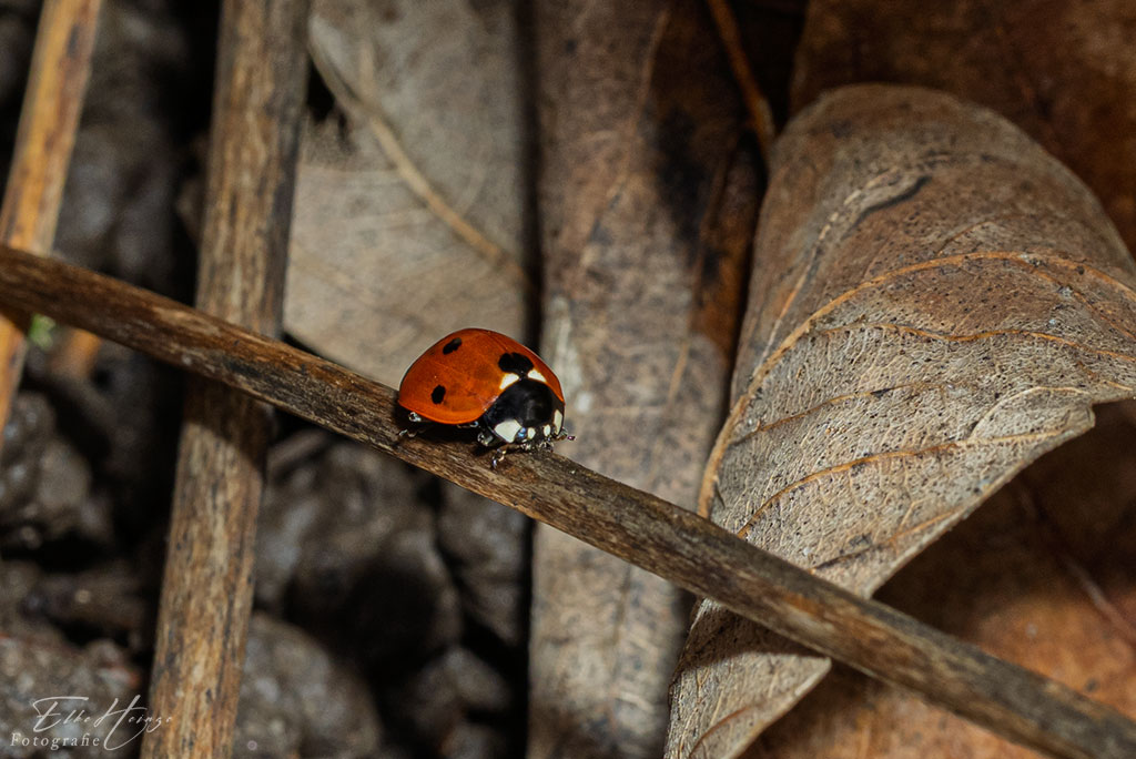 Der Tag war und blieb trüb, aber am Nachmittag habe ich im Garten noch etwas zum Buntspecht farblich passendes entdeckt – nur kleiner. Viel kleiner.