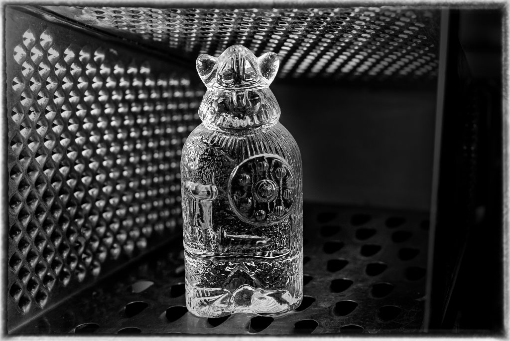 Das mit den Ideen ist gar nicht so einfach. Und sie umzusetzen, dass das Ergebnis auch gefällt, schon gar nicht. Gestern Abend habe ich mich in der Küche umgesehen. Und habe beschlossen, irgendwas mit der Küchenreibe anzufangen. Weil mir das allein aber zu langweilig war, habe ich mir einen kleinen Wikinger aus Glas geschnappt, der seit Urzeiten im alten Setzkasten steht.