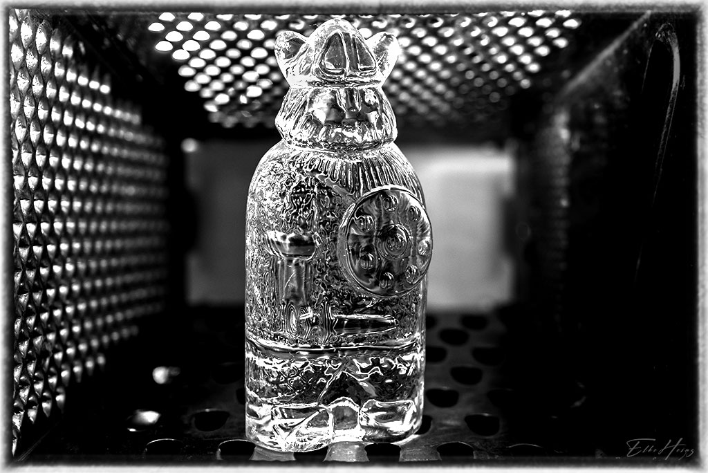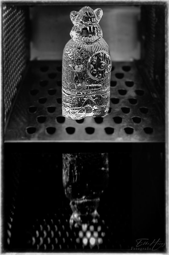 Das erste Bild gefällt mir selbst am besten, obwohl das Glasfigürchen etwas sehr unruhig erscheint. Es gefällt mir im dritten Bild besser, aber da ist der Rest ein bisschen flau. Eine Kombi aus beiden wäre vermutlich ideal. Ich blitze ziemlich selten und an den neuen Godox muss ich mich erst gewöhnen. Normalerweise benutze ich gern die TTL-Funktion, aber bei solchen Nahaufnahmen im Dunkeln muss man alles manuell einstellen, sonst wird das gar nichts.