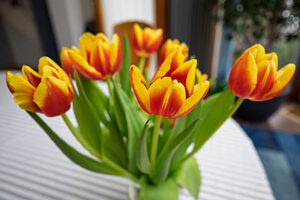 Ich werde mal meinen Tulpenstrauß mit Offenblende fotografieren. Aber eigentlich ist das eher was für die Frankfurter Skyline.