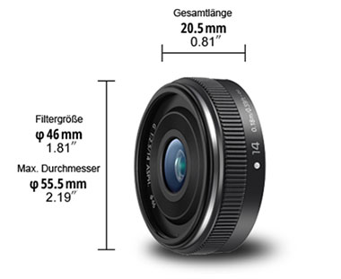 Sehr kleines, leichtes Weitwinkel (55 g), auch ziemlich lichtstark bei Offenblende 2.5; ein typisches Pancake-Objektiv.