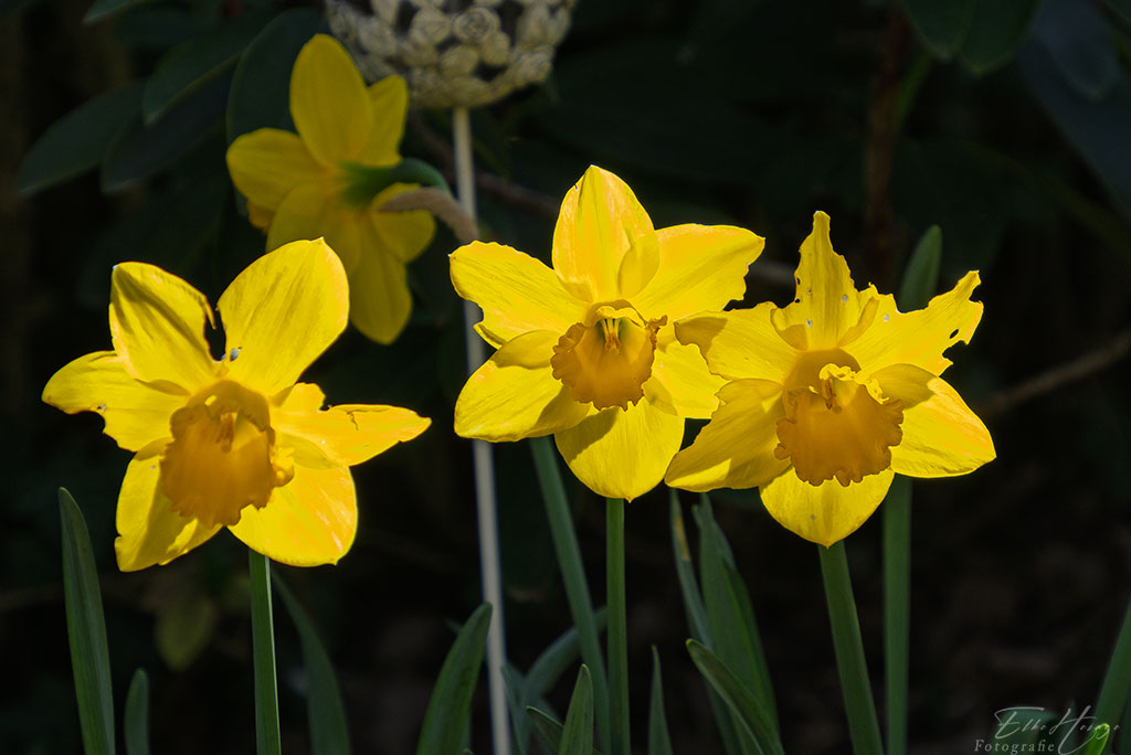 Wer zum Geier frisst Osterglocken an? Wenn sie am Boden lägen, dann wären Schnecken eine Erklärung. Aber die Blüten stehen aufrecht!