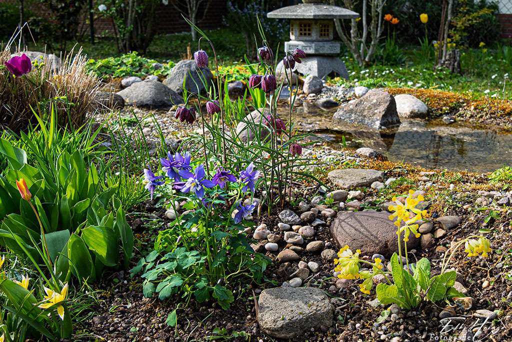Später habe ich noch die Akelei unterhalb der Schachbrettblumen eingepflanzt und gleich daneben eine Schlüsselblume, die ich an einer anderen Stelle ausgegraben habe. Das Versetzen dieser Schlüsselblumen ist überhaupt kein Problem. Die nehmen das sehr gelassen.