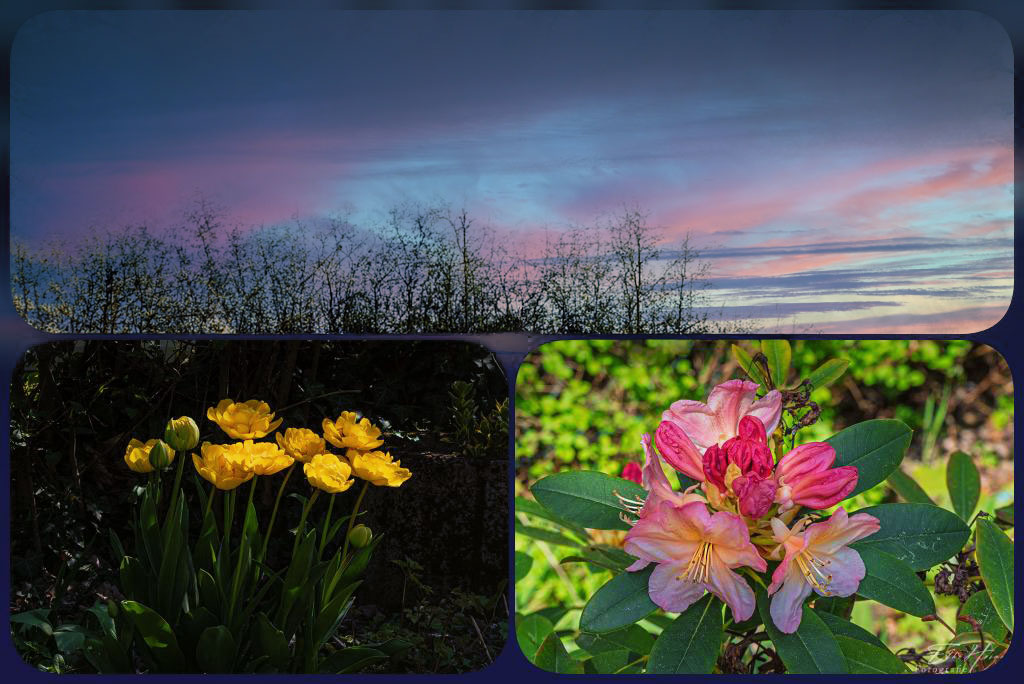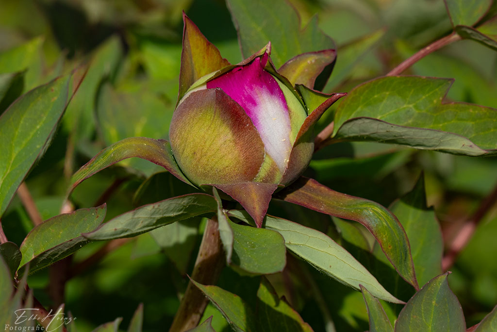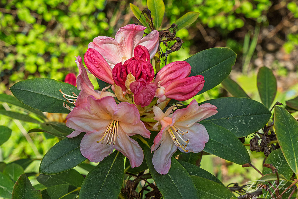 Kleine Pause und mal gucken, was sonst so los ist. Ich entdecke tatsächlich die erste Rhododendronblüte. Die ist schneller als die Blüten der Chinesischen Strauchpfingstrose. Das ist ungewöhnlich. Aber die brauchen auch nicht mehr lang.