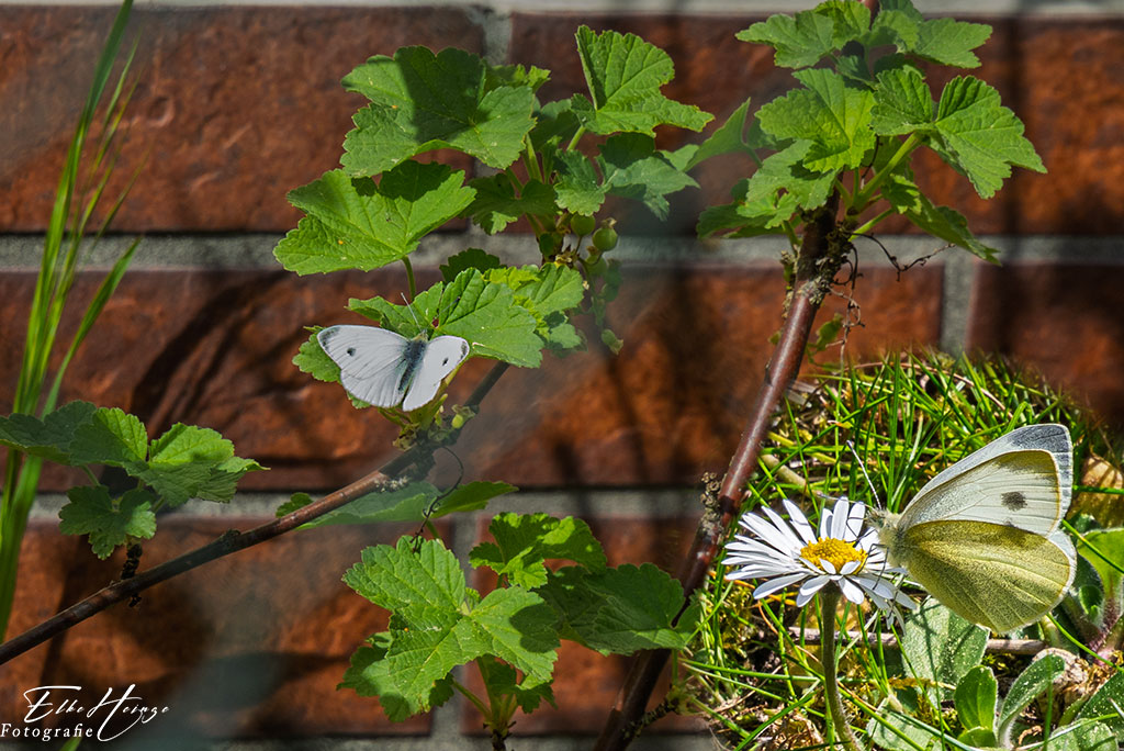 Heimlich hatte ich ja gehofft, dass sich gleich mal ein Schmetterling auf dem blühenden Bergbohnenkraut niederlassen würde, aber die umherfliegenden Kohlweißlinge bevorzugten eindeutig Gänseblümchen oder die Johannisbeersträucher im Nachbargarten.