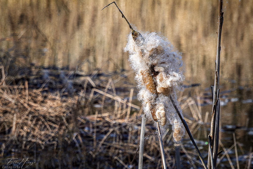 Am großen Weiher verstreuten die Rohrkolben ihre Samen mit dem Wind. Die Kolben sahen teilweise etwas putzig aus. Und die ersten Weidenkätzchen sind schon zu sehen.