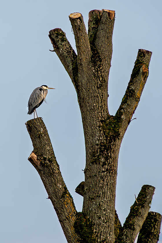 Dieser Graureiher in luftiger Höhe war ungelogen das einzige Wasservogelgetier, das mir heute überhaupt begegnet ist.