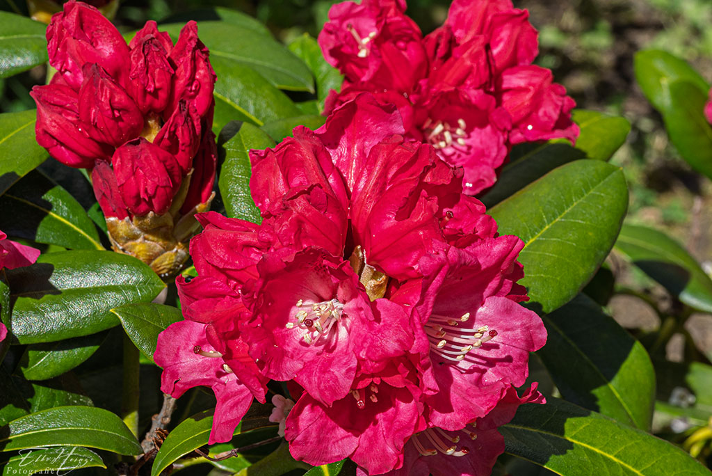 Die nächsten Rhododendronblüten sind aufgeblüht. Das geht jetzt Schlag auf Schlag. Warum der Rhododendron bei reinen Naturgärtnern als Neophyt so unbeliebt ist, kann man an den Bienen beobachten. Die Bienen steuern die Blüten zwar an, drehen aber gleich wieder ab und wenden sich lieber den darunter blühenden Hasenglöckchen zu. Meine Rhodos gebe ich aber trotzdem nicht her. Mein Garten ist vielfältig genug. Bei der Nachbarin nebenan darf ich demnächst Bärlauch ausgraben, den ich dann bei uns ansiedeln werde. Ja, ich weiß, dass der sehr ausbreitungsfreudig werden kann, aber ich habe eine ganz gute Stelle dafür im Auge.
