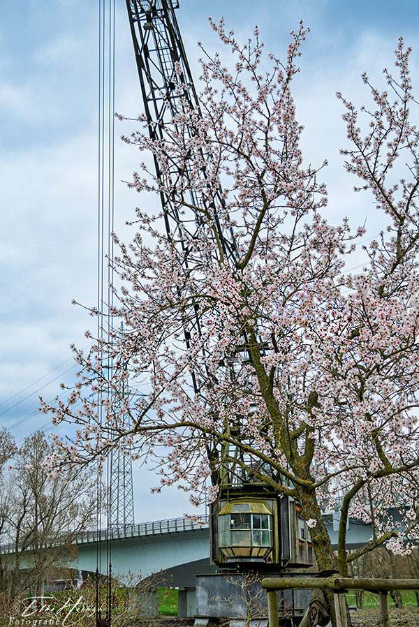 Nach dem Mittagessen bin ich nochmal an den Main, um auf dem Süwag-Gelände nach den Mandelbäumchen zu gucken. Und – o Wunder! – sie blühen bereits. Ohne Sonne ist es leider nur die halbe Miete. Aber ich habe beim Bearbeiten ein bisschen an den Reglern gedreht, damit die Fotos nicht ganz so finster aussehen. Und da ich nun wieder mit der OM-3 fotografiert habe und mir RAW-Dateien zur Verfügung standen, ging das so halbwegs.
